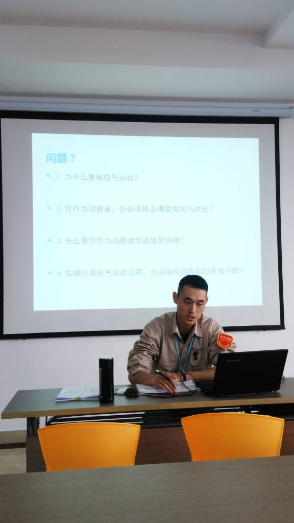 電試班組是公司重要的組成部門,是鑒定安裝工程安全性和正確性的最后把關(guān)部門,培訓(xùn)過程中分析了電氣試驗(yàn)的重要性,就安全生產(chǎn)聯(lián)系客戶市場提出了系列發(fā)人深思的現(xiàn)實(shí)性問題,灌輸全體電試班組工作人員思想上重視安全、工作中遵規(guī)守紀(jì)、實(shí)操時(shí)循序漸進(jìn)、強(qiáng)化自身安全責(zé)任感的重要理念,培訓(xùn)中由電試班組領(lǐng)導(dǎo)程英就近期工作開展情況和電試業(yè)務(wù)的操作規(guī)范要求作了報(bào)告。